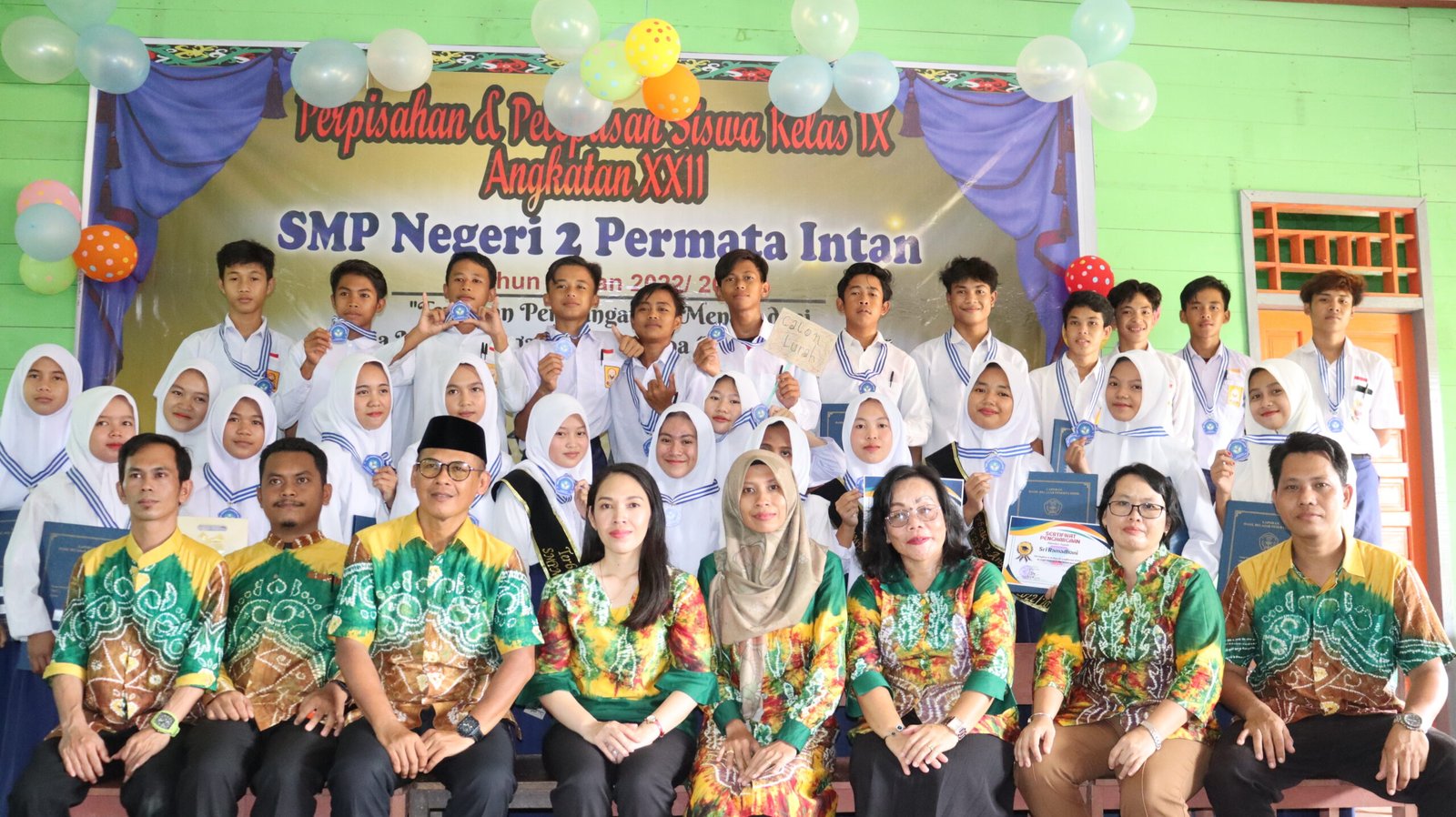 Kegiatan pelepasan siswa Tahun Ajaran 2023 berlangsung dengan penuh kebahagiaan dan kebersamaan. Acara ini menjadi momen berharga bagi peserta didik kelas IX yang telah menyelesaikan masa belajarnya di SMP Negeri 2 Permata Intan.