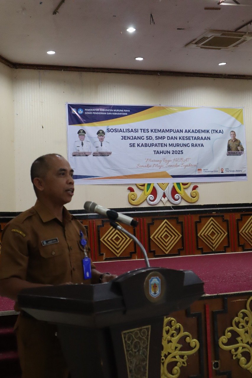Puruk Cahu, 3 November 2025 — Pemerintah Kabupaten Murung Raya melalui Dinas Pendidikan dan Kebudayaan menggelar kegiatan Sosialisasi Tes Kemampuan Akademik (TKA) bagi jenjang SD, SMP, dan Pendidikan Kesetaraan se-Kabupaten Murung Raya.